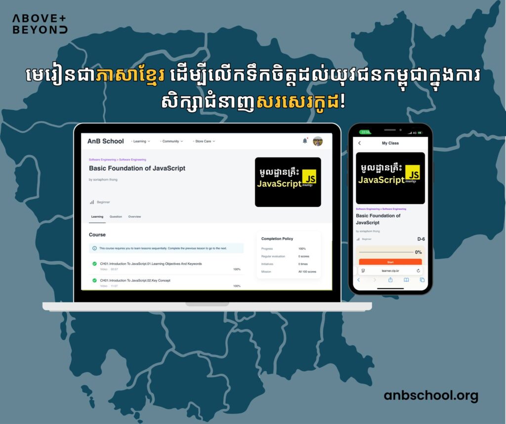 That’s why Above & Beyond remains 100% free and why our Front-End Developer program is fully available in Khmer. No English test. No tuition fees. Just commitment and hard work.